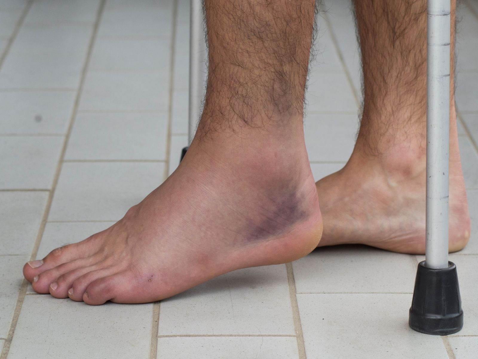 - Vznikne rozsáhlý hematom (modřina), který se šíří kolem kotníku nebo do chodidla.